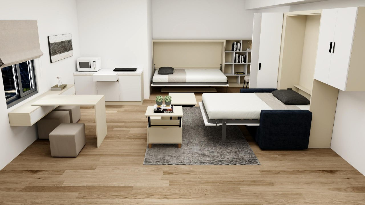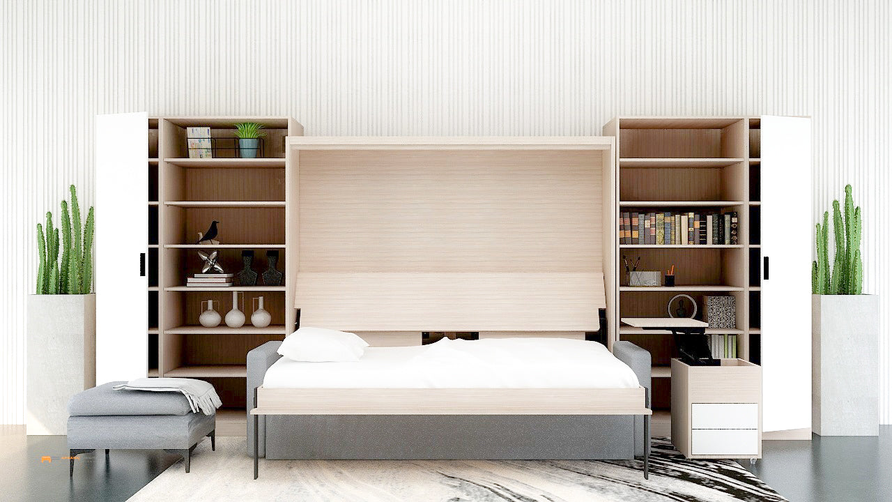 While not in use, a wallbed, allows you to fold your bed up against the wall to save space. These beds are common in smaller homes, like apartments or studio apartments, when making the most of the available floor space is crucial. For each bedroom's design and sleeping requirements, wallbeds are available in a variety of sizes and styles.