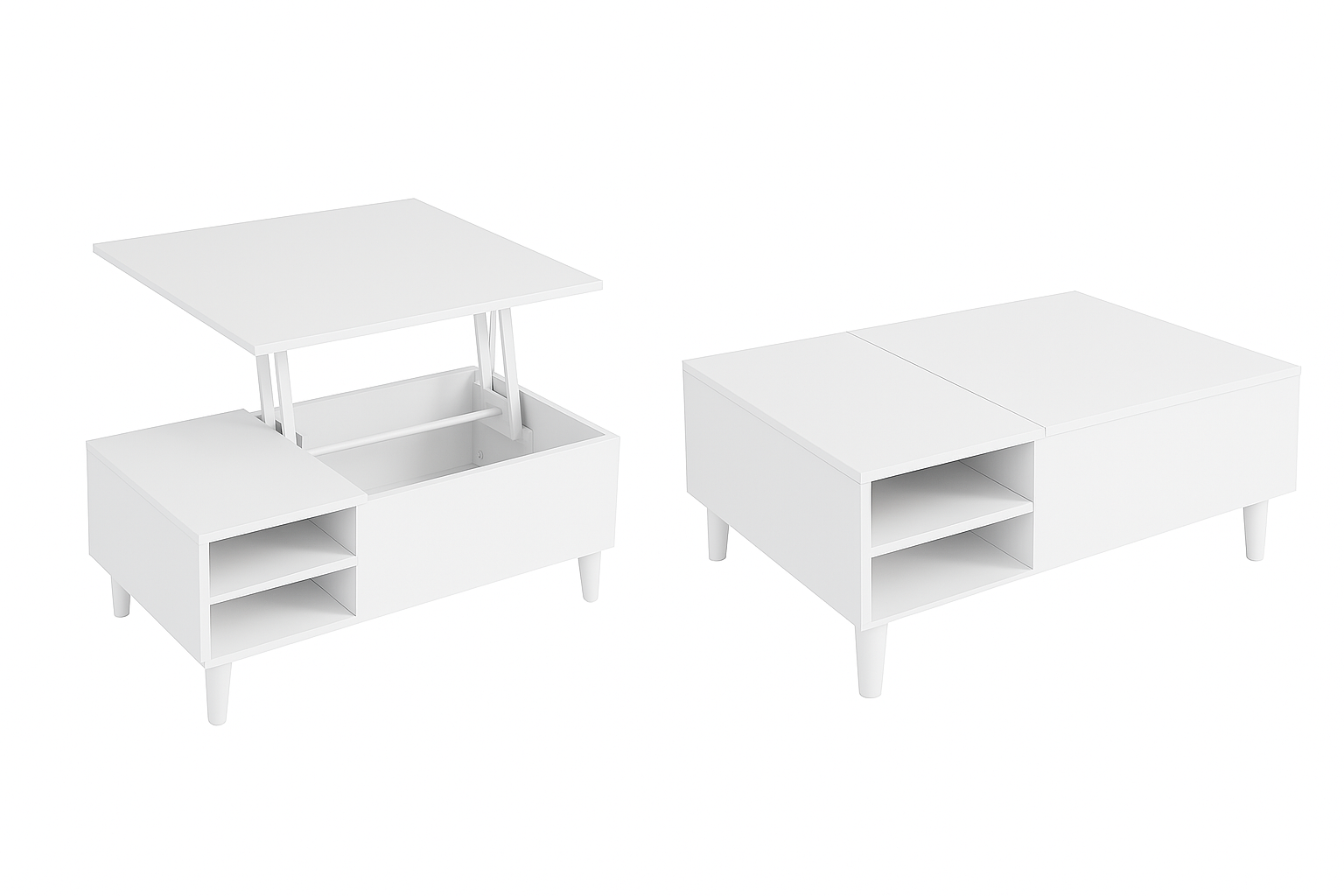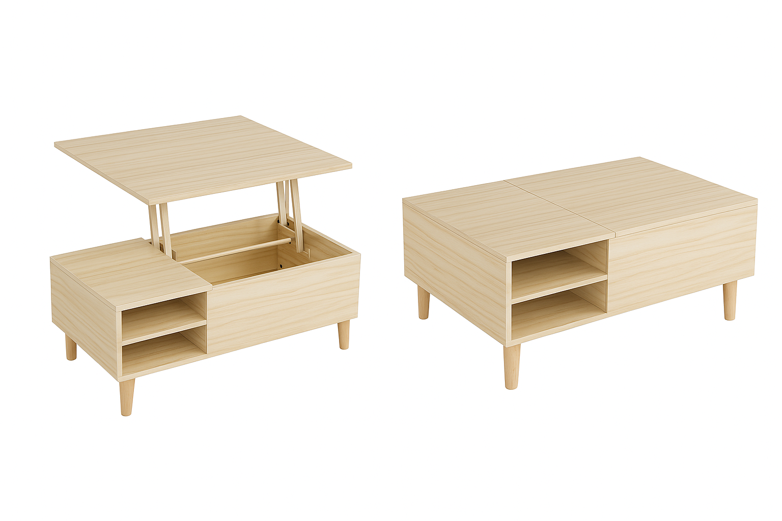 Function: A modern multifunctional table designed for space efficiency and versatility. The tabletop lifts smoothly to reveal a hidden storage compartment—perfect for work, dining, or organizing living spaces.